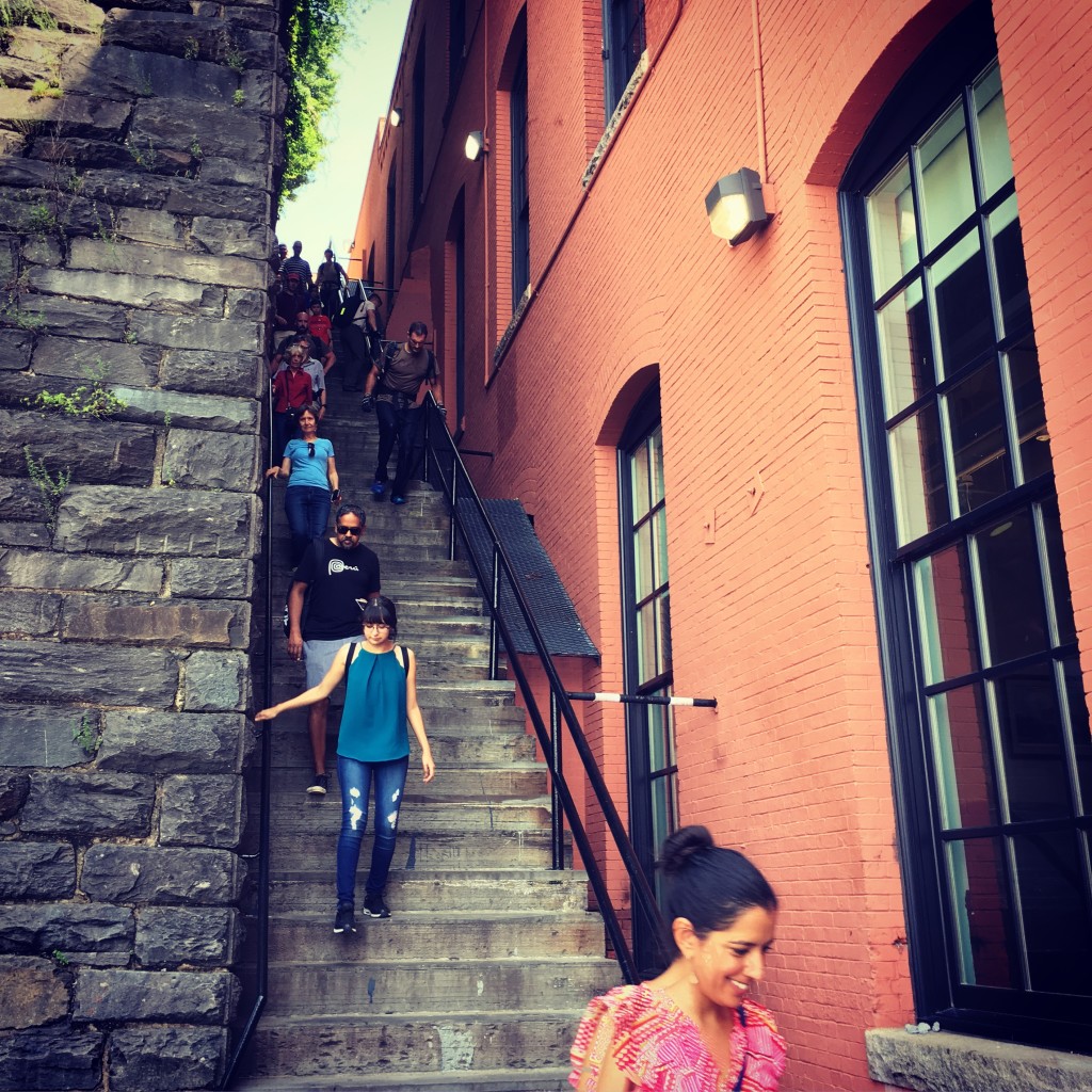 As we wind through the neighborhood’s quiet residential core, we’ll encounter a striking mix of Federal, Victorian, Second Empire, and Queen Anne architecture, alongside stately churches, tucked-away alleys, and remnants of the city's early streetcar system. Highlights include the Newton D. Baker House, once home to Jacqueline Kennedy; Alexander Graham Bell’s laboratory; the Gothic revival campus of Georgetown University, and a descent down the iconic Exorcist Steps, where film history meets urban folklore. The tour concludes along the Georgetown Waterfront, a once-industrial shoreline and now vibrant public park, in a fitting conclusion to the rags to riches transformation of Georgetown.