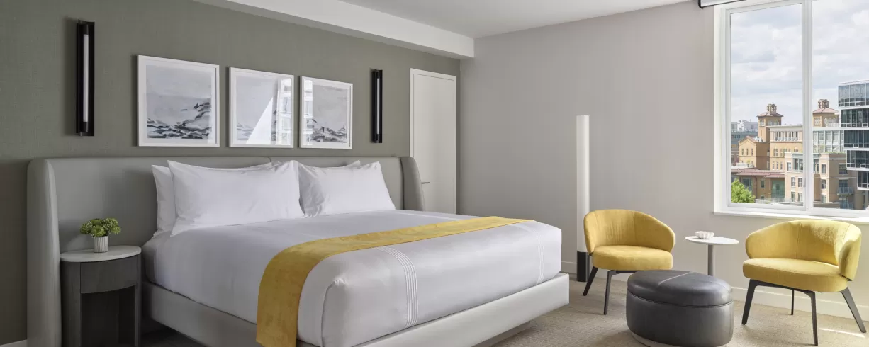 Hotel AKA Washington Circle offers a sophisticated stay in the vibrant Foggy Bottom/West End neighborhood in downtown Washington, DC. Conveniently located directly across from the Foggy Bottom Metro station, this boutique hotel features luxury accommodations perfect for both short and long-term stays, including contemporary guestrooms and spacious one-bedroom suites, many with terraces and full kitchens or kitchenettes.