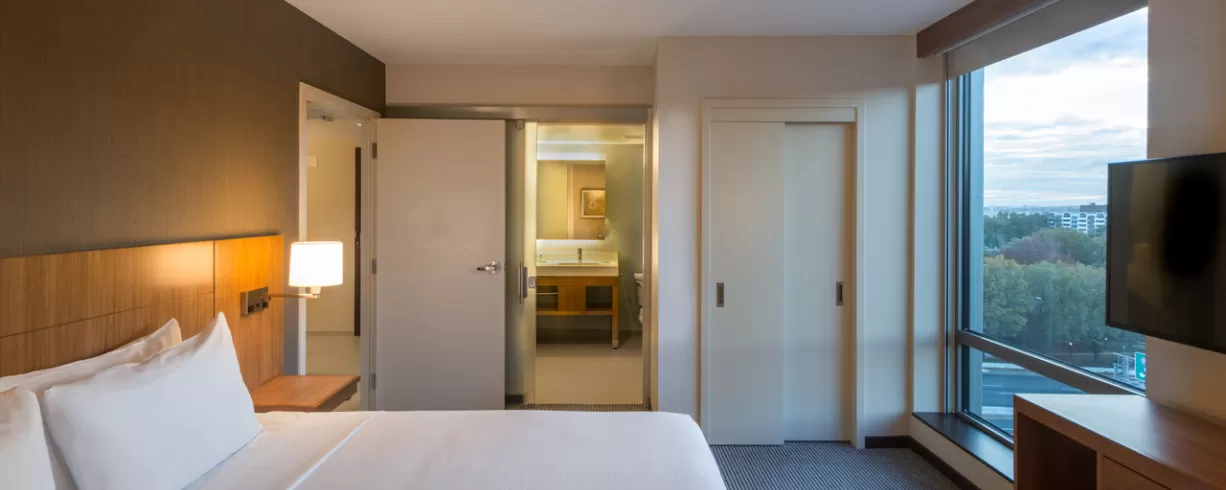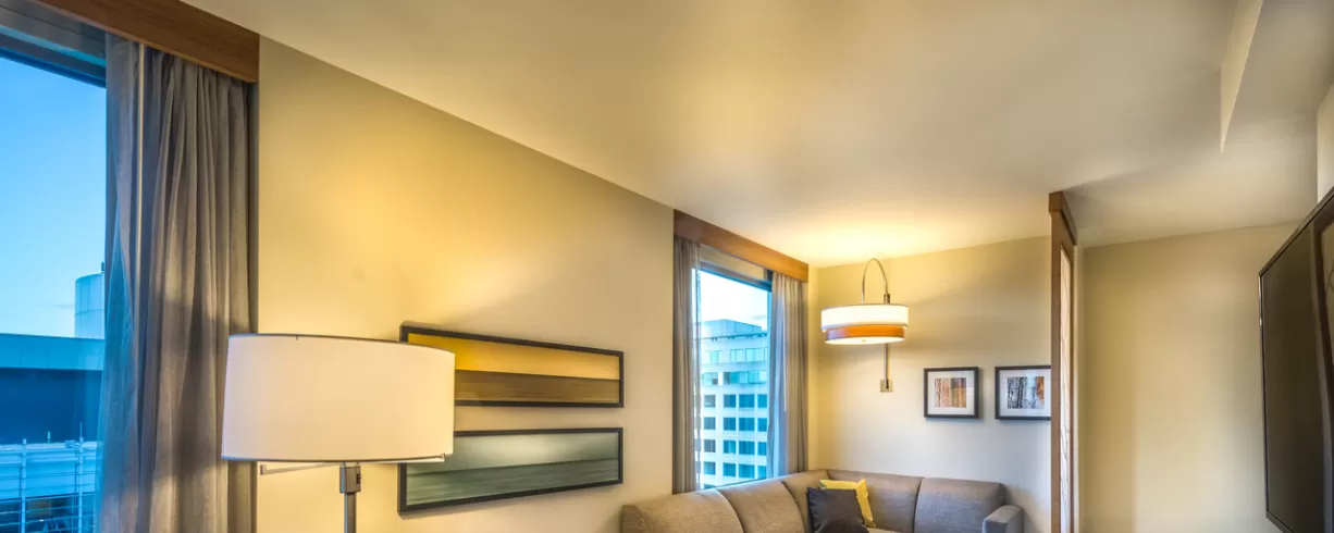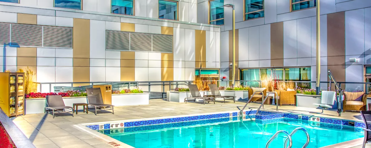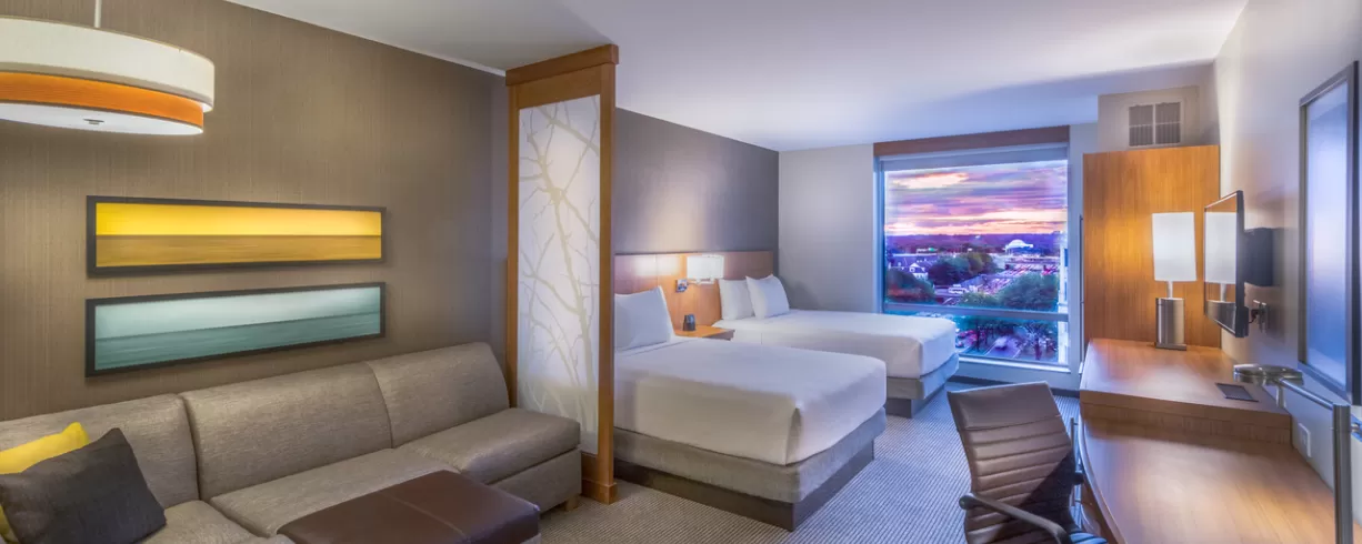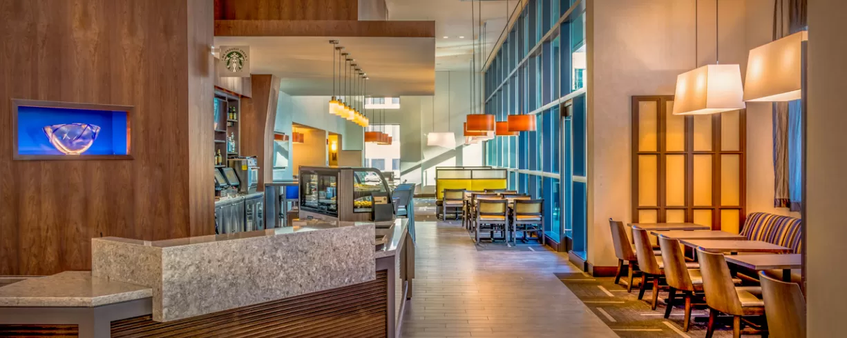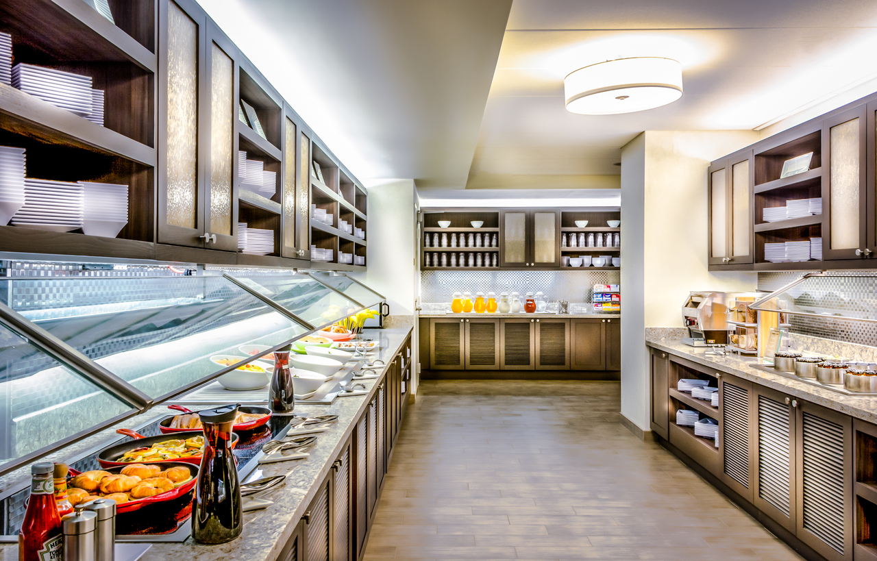Our upscale select-service hotel is known for spacious guestrooms with state-of-the-art media center, free hotel-wide WiFi, free a.m. Kitchen Skillet hot breakfast, 24-hour StayFit gym, Coffee to Cocktail Bar featuring our 24-hour Dining Menu/Cafe. In addition, the hotel has a seasonal outdoor pool.