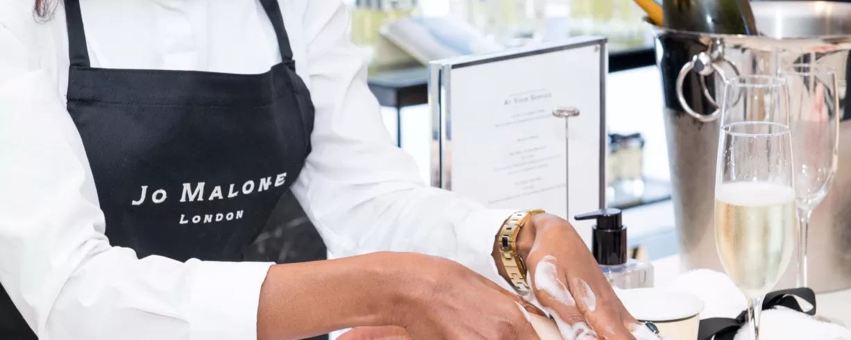 Jo Malone London is synonymous with a bespoke style of service where every need is anticipated. From advice on styling a scented statement to a specially chosen gift. Or simply indulge in some pampering me-time. A relaxing Hand Arm Massage at the Tasting Bar™ is an invitation to engage the senses, to discover Fragrance Combining™ while enjoying drinks and treats inspired by the scents.