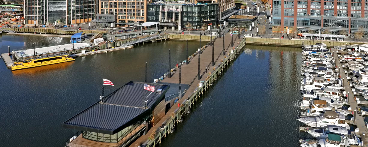 The Wharf is one of the most connected and accessible neighborhoods in Washington, DC. With Metro and VRE in easy walking distance, Reagan International Airport and Union Station ten minutes away by car, underground parking, Capital Bikeshare onsite, and daily water taxi access, getting to The Wharf is a breeze.