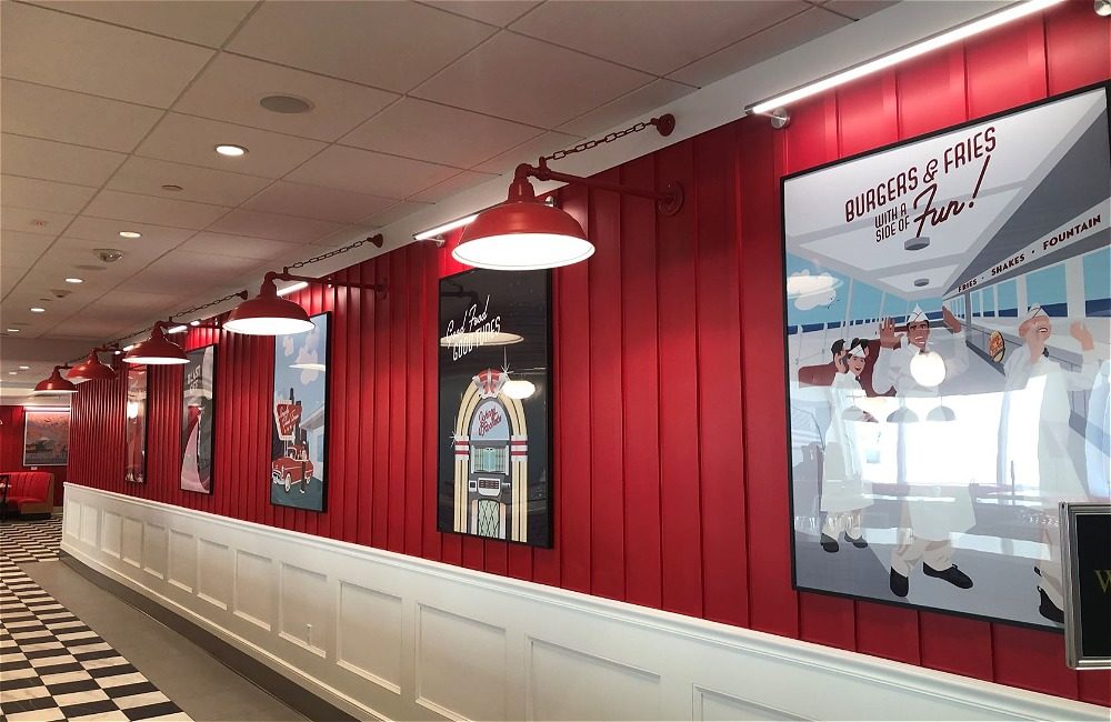 Fun atmosphere dining serving hamburgers, shakes and more