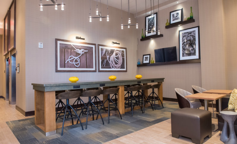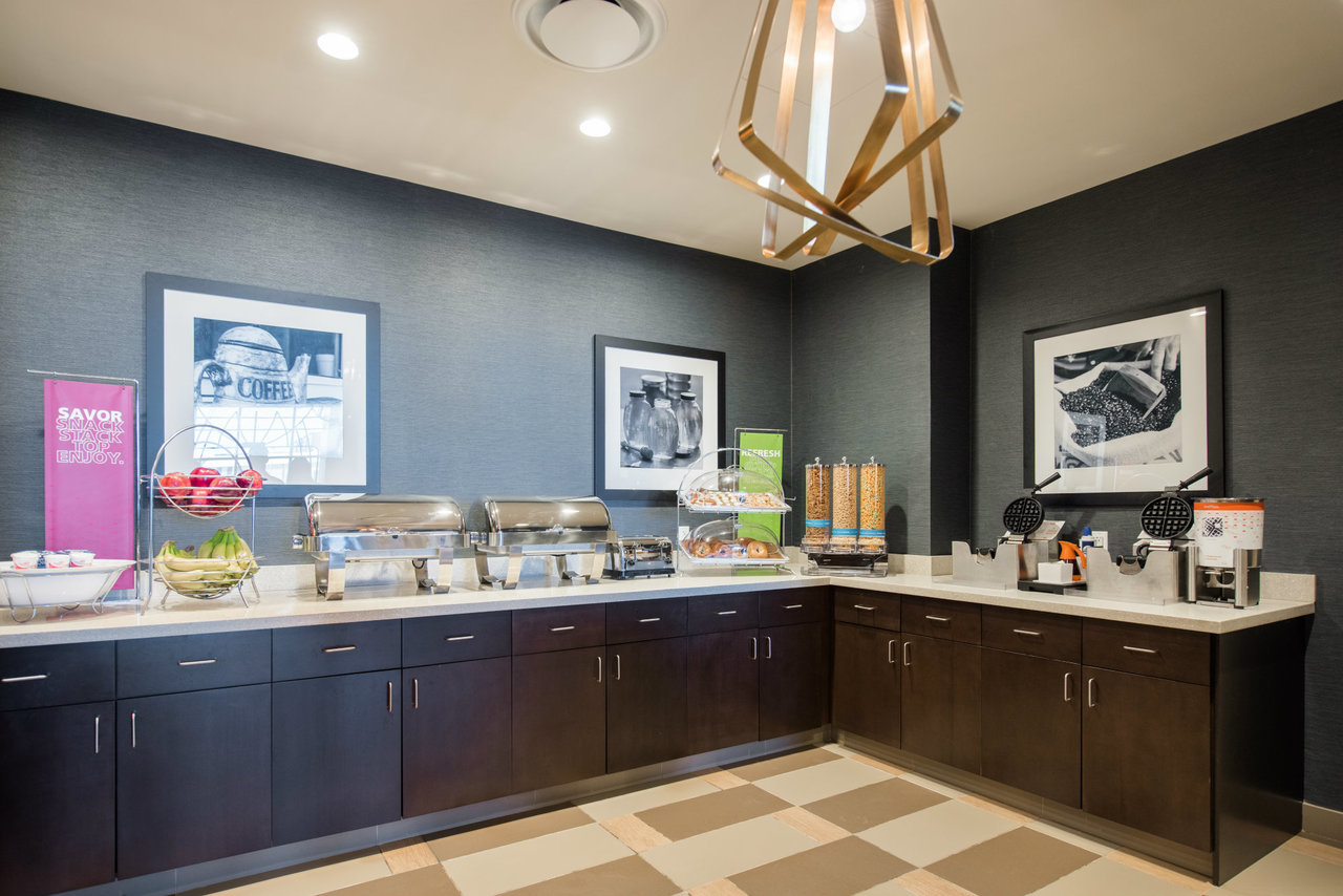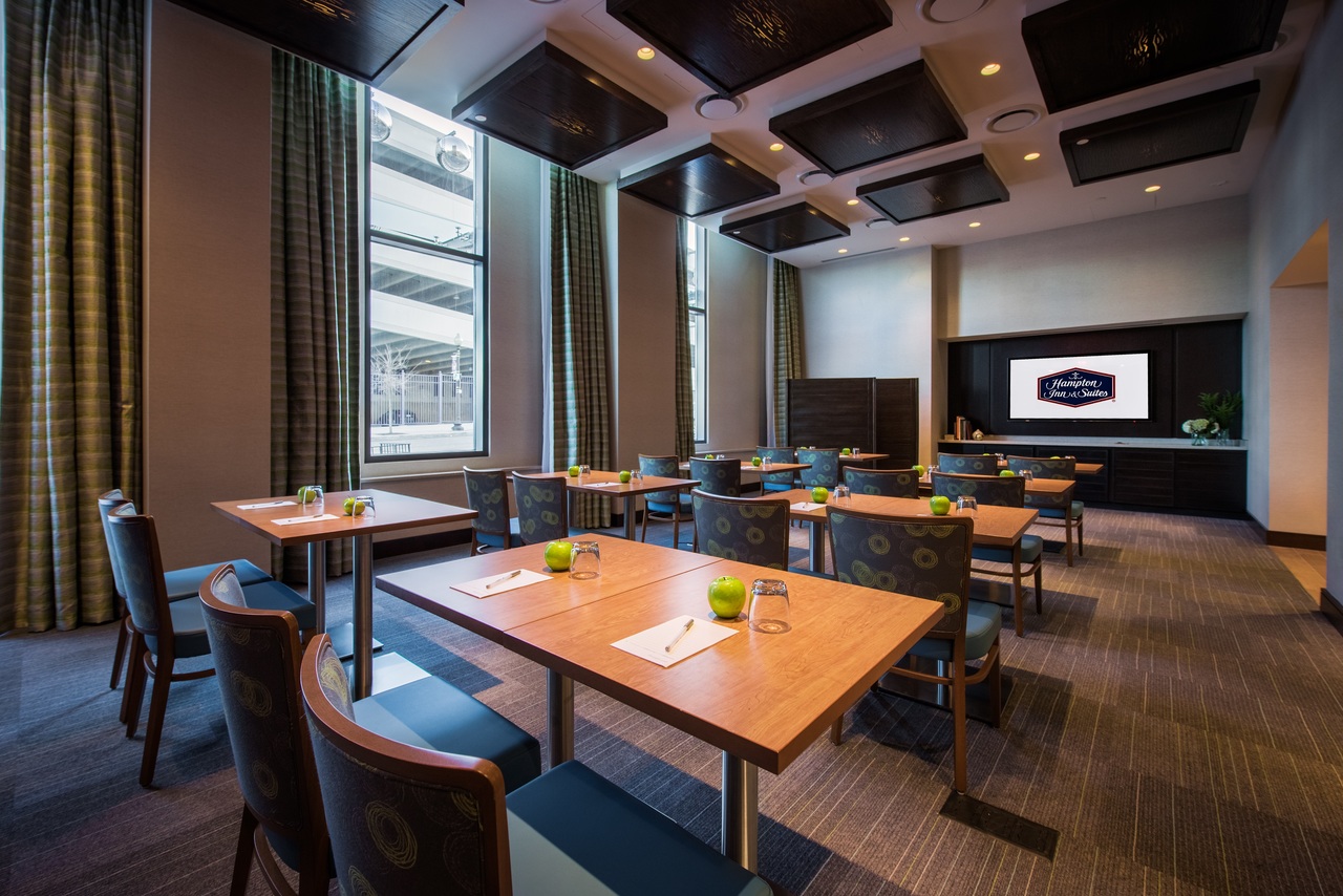 Attendees can start the day with complimentary hot breakfast served daily. During your event, guests can stay on their game in one of 168 inviting guest rooms and suites with a range of convenient amenities, including free Wi-Fi, ergonomic workstation, a clean and fresh Hampton bed®, refrigerator and a 40-inch flat-screen TV. Stay energized with a workout in the fitness center.