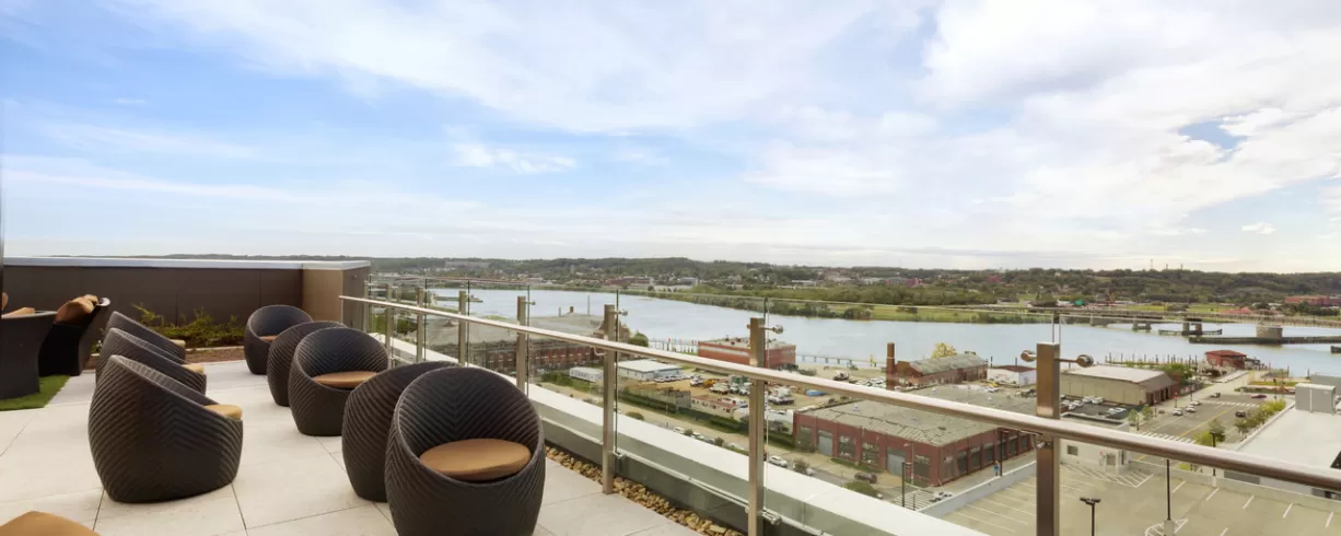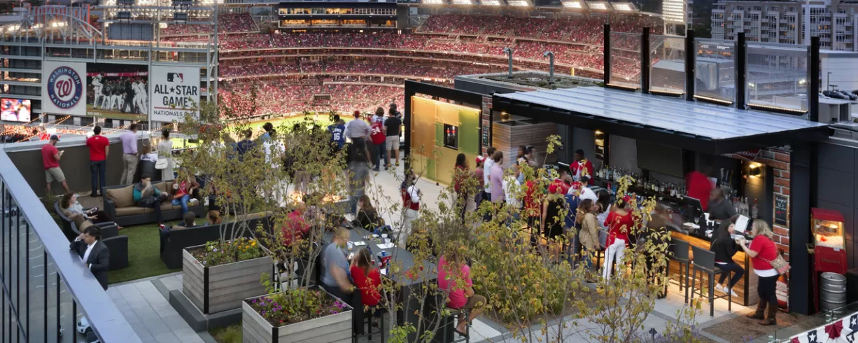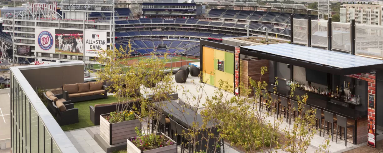 Roof top bar and grill with view of Nationals Park, Washington Monument, the Capitol, Anacostia River.