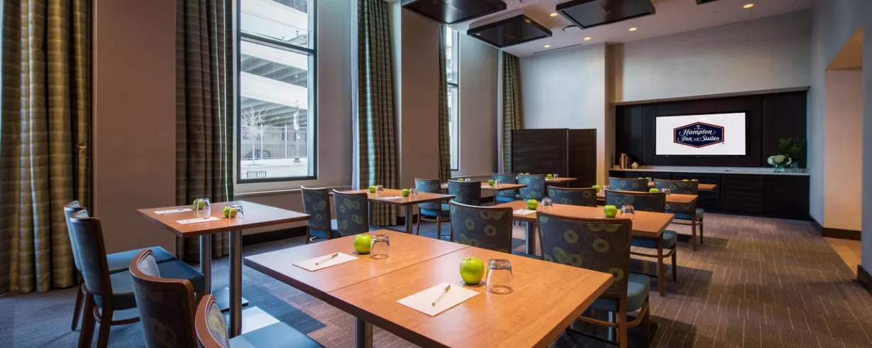 Conveniently located in the Capitol Riverfront neighborhood, Hampton Inn Suites Washington DC- Navy Yard Hotel is adjacent to Nationals Park and Washington Navy Yard. The Navy Yard Ball Park metro rail station is just a half block away and the Capitol South station is a 15-minute walk from the hotel.